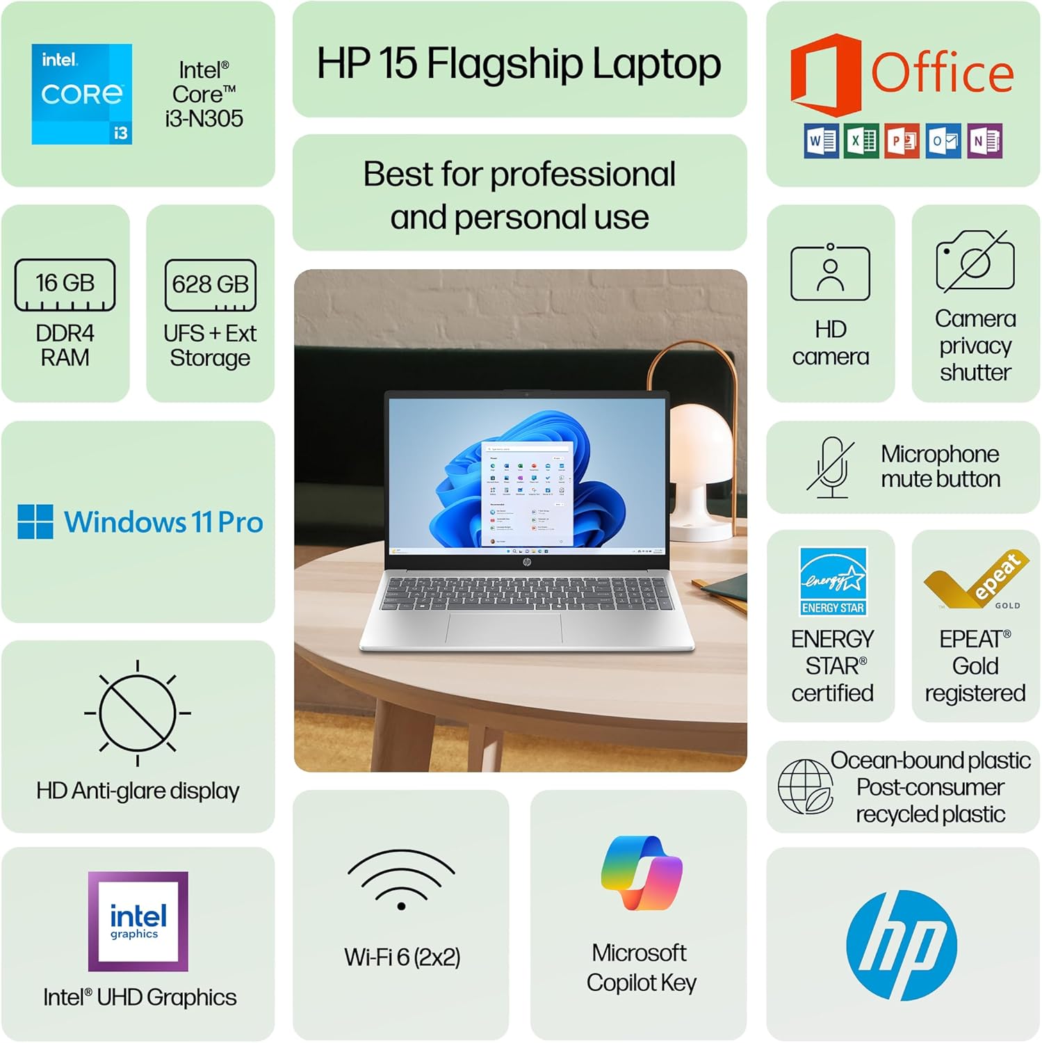 HP Laptop 2025 Flagship Business Ultra Slim, Lifetime Office, AI-Powered,15.6″ HD, 8-Core Intel i3, 16GB RAM, 628GB Storage (128GB UFS+500GB Ext), Wi-Fi 6, Copilot Key, HubxcelAccessory, Win 11 Pro